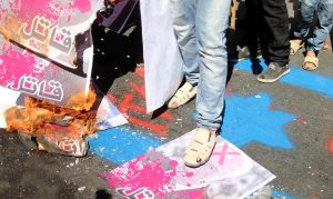 شباب غزة يودعون ” قاتل الاطفال والنساء” بإحراق صوره عقب صلاة الجمعة #شيمون_بيريز