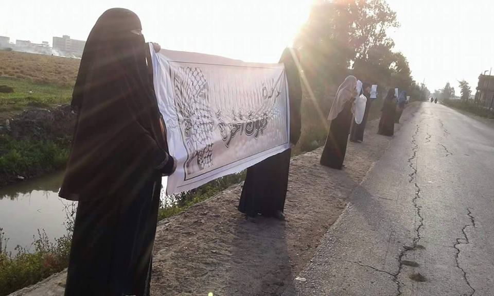 سلسلة بشرية لحرائر شاوة للتنديد ببيع الأرض