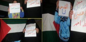 ورفع المشاركون شعار رابعة وعلم فلسطين , كما هتفوا ” ارحل يا سفاح ” ” القدس لنا ” ” الأقصي خط أحمر ,كما تساءلوا من المستفيد من إراقة دم المصريين .
