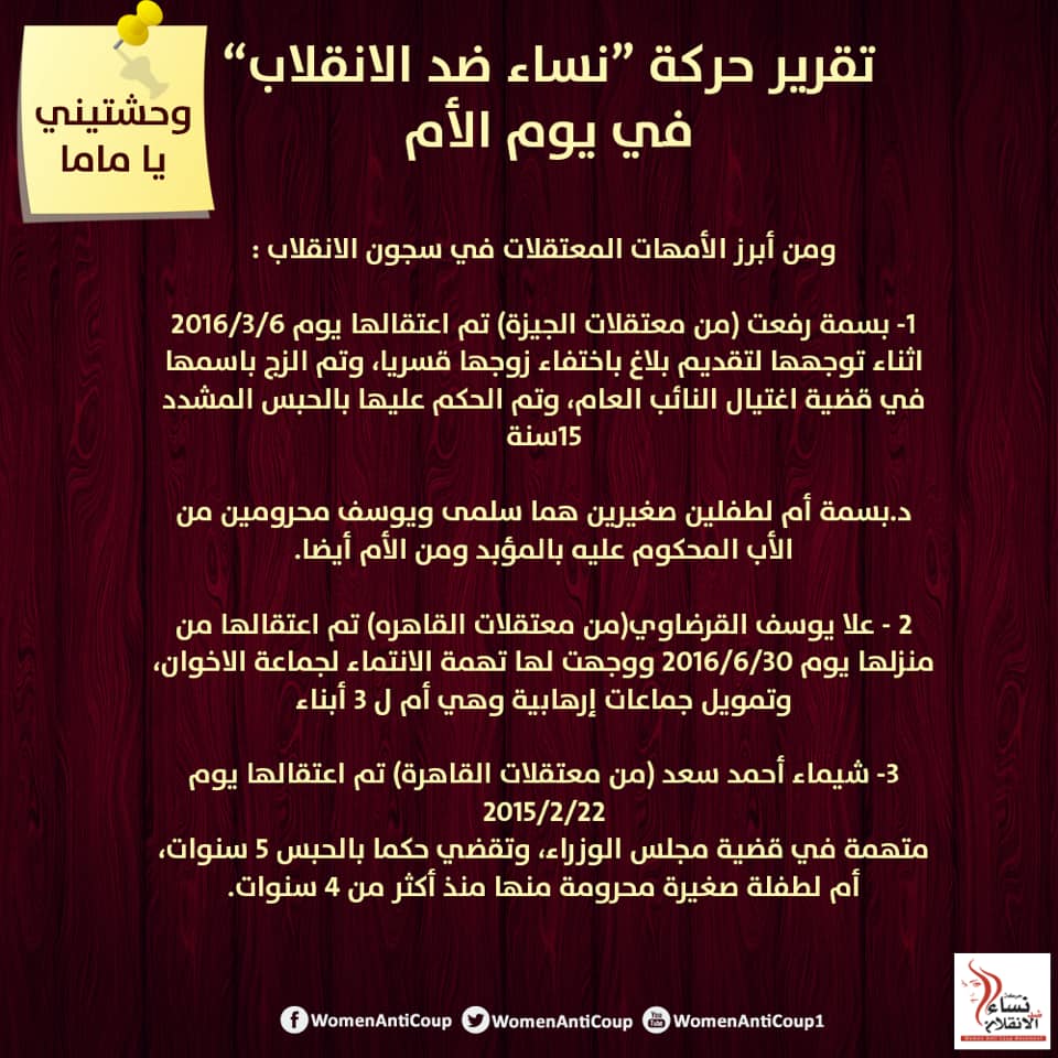 ومن أبرز الأمهات المعتقلات في سجون الانقلاب :