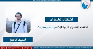 استنكرت منظمة السلام الدولية لحماية حقوق الإنسان، استمرار الاختفاء القسري بحق المواطن “سيد ناصر محمد الشحات”، البالغ من العمر 24 عامًا، للشهر الحادي عشر على التوالي. وذكرت المنظمة- عبر صفحتها على فيس بوك اليوم الخميس- أنه منذ أن تم اعتقاله بشكل تعسفي من قبل قوات أمن الانقلاب يوم 4 مايو 2018 من منزله، تم اقتياده لجهة غير معلومة حتى الآن. ...