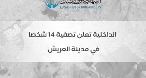 أعلنت وزارة الداخلية عبر صفحتها الرسمية تصفية 14 شخصا، بأحد المناطق النائية بمدينة العريش، خلال ما قالت أنه اشتباك معهم، ولم تكشف عن أسمائهم. ومركز الشهاب لحقوق الإنسان يطالب الوزارة بوقف القتل خارج نطاق القانون، بنشر أسماء المقتولين، ويطالب النيابة العامة بالتحقيق في الواقعة. #قتل_خارج_نطاق_القانون