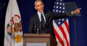 قام الرئيس الأميركي السابق باراك أوباما بتوجيه انتقادات لاذعة للرئيس الحالى ترامب بسبب سياساته الداخلية والخارجية. وبطريقه ساخره انتقد أوباما، انسحاب ترامب من اتفاقية المناخ العالمي، وذكر أمام جمهوره في جامعة إلينوي الأسبوع الماضي: «لقد اتخذوا قرارات أدت إلى أن هناك أمة واحدة في الأرض انسحبت من اتفاقية المناخ العالمي، هذه الأمة ليست كوريا الشمالية، ولا سوريا، ولا روسيا، ولا السعودية ...