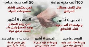 شنَّ نشطاء ورواد التواصل الاجتماعى هجومًا على مسئولى سلطة الانقلاب، عقب صدور كواليس مشروع قانون “المياه الجديد”، الذى أعده برلمان العسكر. ووافق المشروع على إقرار 10 عقوبات على المخالفين، وجاءت على النحو التالى: 100 ألف جنيه غرامة حال إتلاف وسائل المرافق، و50 ألف جنيه لمن يعترض إنشاء مشروعات المياه، والحبس 6 أشهر وغرامة 20 ألف جنيه لرش الشوارع، والحبس 6 ...