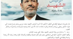 بعد 6 سنوات من الانقلاب العسكري على حكمه في 3 يوليو عام 2013 استشهد الرئيس محمد مرسي في قاعة المحكمة ثابتا صامدا شامخا غير مبدل كما قال قبل 6 سنوات: لم يعط الدنية أبدا في دينه أو وطنه أو شرعيته. استشهد الرئيس محمد مرسي الذي انتصر للضعيف والفقير والمظلوم وللعامل والفلاح والمواطن البسييط واليتيم والأرملة وكبير السن، وحاول جاهدا وسعى ...