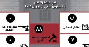 رصدت «التنسيقية المصرية للحقوق والحريات»، خلال الأسبوع الماضي، 193 انتهاكًا لحقوق الإنسان في مصر ارتكبتها ميليشيات العسكر، منذ يوم 29 مارس حتى 4 أبريل 2019 الجاري. وقالت التنسيقية- عبر صفحتها على فيس بوك اليوم الجمعة- إن الانتهاكات تنوعت بين 98 حالة اعتقال تعسفي، و7 حالات إخفاء قسري، و 88 حالة محاكمات وانتهاكات أخرى. كانت المنظمة قد رصدت، على مدار 4 ...