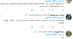شهد هاشتاج “#حصاد_2018_الأسود” تفاعلًا من جانب رواد مواقع التواصل الاجتماعي، ورصد المغردون جانبًا من جرائم العسكر بحق المصريين، والأزمات والكوارث التي جلبوها للشعب خلال عام 2018، معربين عن تمنياتهم بأن يشهد عام 2019 إسقاط عصابة العسكر. وكتب محمود محمد علي: “أصبح معظم المصريين تحت خط الفقر وإلغاء الطبقة المتوسطة، وأصبح المصريون ما بين فقراء تحت خط الفقر، وأغنياء بشكل فاحش”، ...
