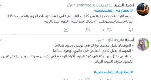 تصدّر هاشتاج “#المقاومة_الفلسطينية” قائمة الهاشتاجات الأكثر تداولًا على موقع تويتر؛ للإشادة بصمود أبطال المقاومة الفلسطينية في وجه جيش الاحتلال الصهيوني، وإحباطهم محاولة اختطاف الشهيد القسامي نور بركة بمنطقة خان يونس، وإيقاعهم خسائر بشرية فادحة في صفوف ضباط وجنود الاحتلال. وكتبت ندى عبد العليم: “أنا ابن القسام.. دربي الجهاد ويقيني بالنصر يقيني.. تجدني في أرض الموت.. أحارب المغتصب وأهدم كيان المحتل”. ...