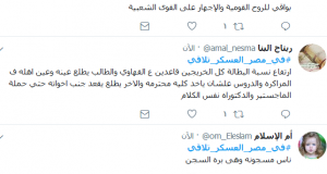 شهد هاشتاج “#في_مصر_العسكر_تلاقي” تفاعلًا واسعًا من جانب رواد مواقع التواصل الاجتماعي، وأكد المغردون تردي الأوضاع السياسية والمعيشية والاقتصادية والاجتماعية في ظل حكم العسكر. وكتبت ريتاج البنا: “تلاقي ارتفاع نسبة البطالة كل الخريجين قاعدين على القهاوي.. والطالب يطلع عينه وعين أهله في المذاكرة والدروس علشان يدخل كلية محترمة، والآخر يطلع يقعد جنب إخواته حتى حملة الماجستير والدكتوراه نفس الكلام.. وتلاقي ارتفاع ...