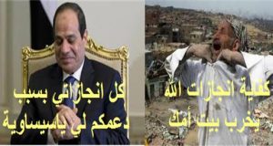 رد نشطاء ورواد مواقع التواصل الاجتماعى “فيس بوك”، اليوم الأربعاء، على تصريحات قائد الانقلاب عبدالفتاح السيسى بقول: لو غلطان حسبونى، فى افتتاح فنكوشى للاستزراع السمكى بمحافظة الإسماعيليلة اليوم، بأن الكلام حلو ولكن الفعل لا ينفذ لأسباب معلومة، وإن السيسى يعلم إنه لن يحاسبه أحد! قال محمد يوسف، هاتتحاسب على بيع الأرض ولا على قتل الناس ولا علي الفساد ولا على ...