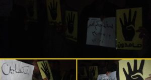 نظم أحرار أجا سلسلة بشرية ليلية رفعوا خلالها شارات رابعة ونددوا بالانقلاب العسكرى وهتفوا مطالبين بإسقاط الانقلاب